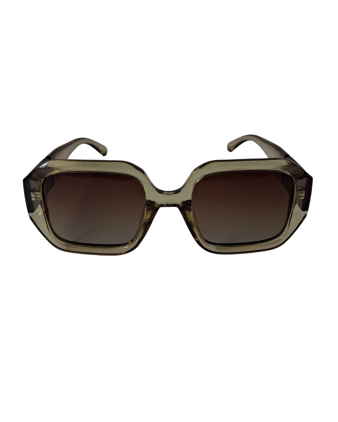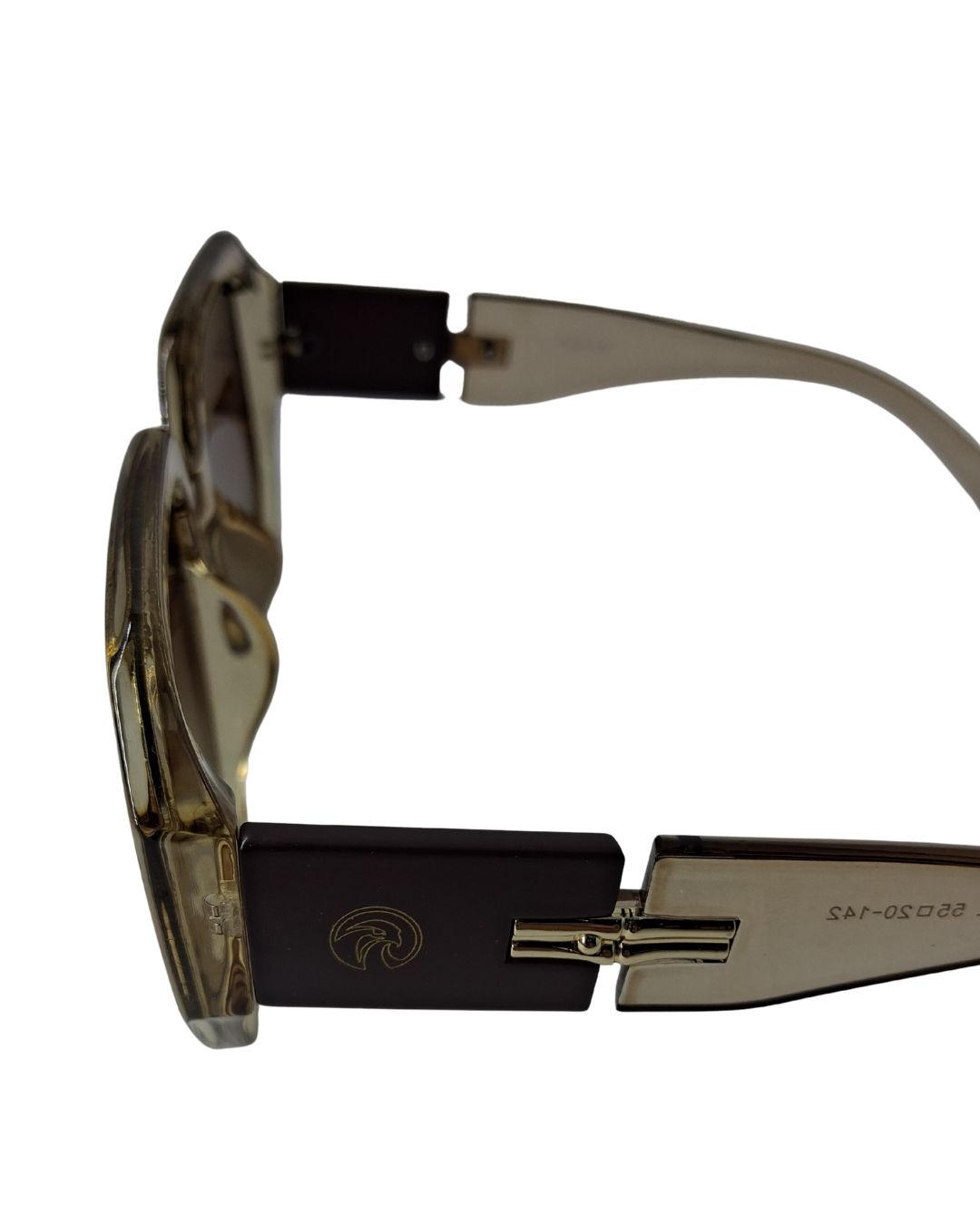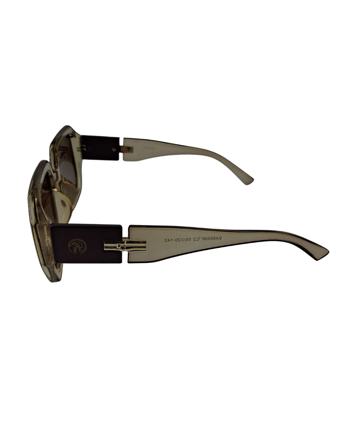 Armação com material leve e flexível com detalhes dourado, hastes larga, com suporte de nariz fixo, nas cores Preta com Detalhe Branco ou Marrom transparente com detalhe marrom
